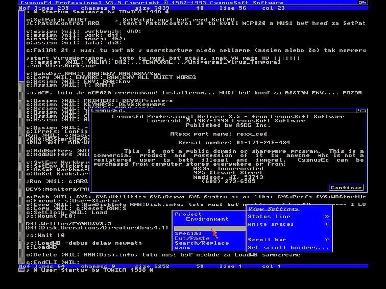 A Commodore Amiga, for those who don't know, is a 16/32 bit computer system based on the Motorola 680x0 CPU and a few specially designed custom chips that provide very good graphics and sound capabilities. Its first incarnation, the A1000, appeared in 1985, followed by the highly successful A500 and A2000 models.