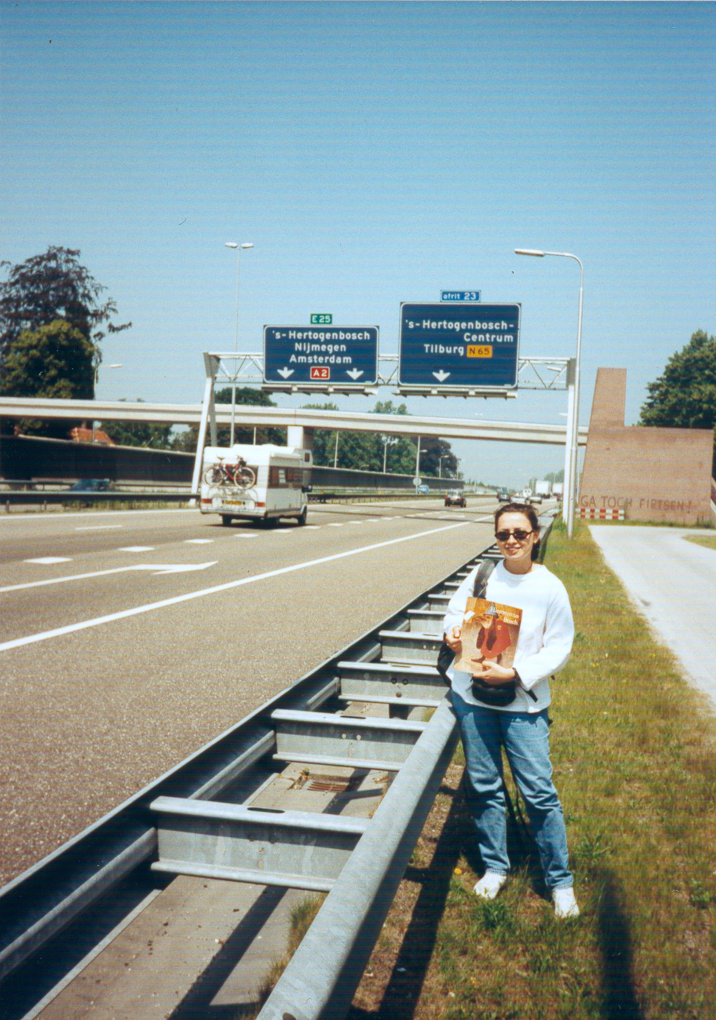 Stopom s Baškou do Belgicka. Zastavili sme sa v Nadinom ateliéri v Prahe, potom u starých rodinných priateľov Jürgenovcov v Kottmarsdorfe, ďalej v Drážďanoch (resp. v Rossendorfe) kde vtedy pracoval Nuno, a s ním sme sa zviezli autom do Leuvenu (kam takmer každý týždeň chodieval za svojou Aldegonde). Väčšinu času sme strávili u Philippa a Annelies v ich starom domčeku na Goudsbloemstraat. Potom, keďže Baška (skrz Depeche Mode!) bola práve celkom preč do obrazov Hertogena Boscha, išli sme stopom do holandského mesta 's Hertogenbosch. V rodnom meste stredovekého maliara sme očakávali tú najkrajšiu zbierku jeho prác... no keď sme sa tam po mnohých ťažkostiach dotrepali, nebolo tam ani len múzeum, len obyčajný kostol, a v ňom namiesto obrazov (či kvalitných reprodukcií) len zarámované plagáty. Skočili sme aj do Amsterdamu, fotiť starenky medzi erotickými zariadeniami, a sledovať bezdomovcov v šťastných kúdoloch dymu.